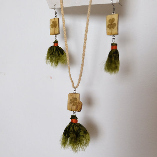Collana con pendente in legno e seta. Acetosella