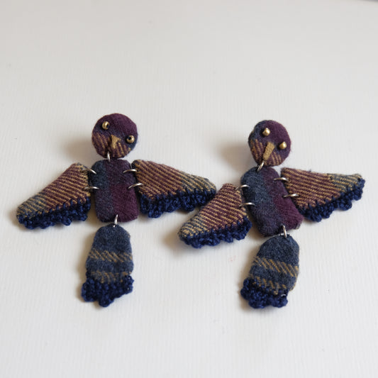 Orecchini in cotone blu/marrone