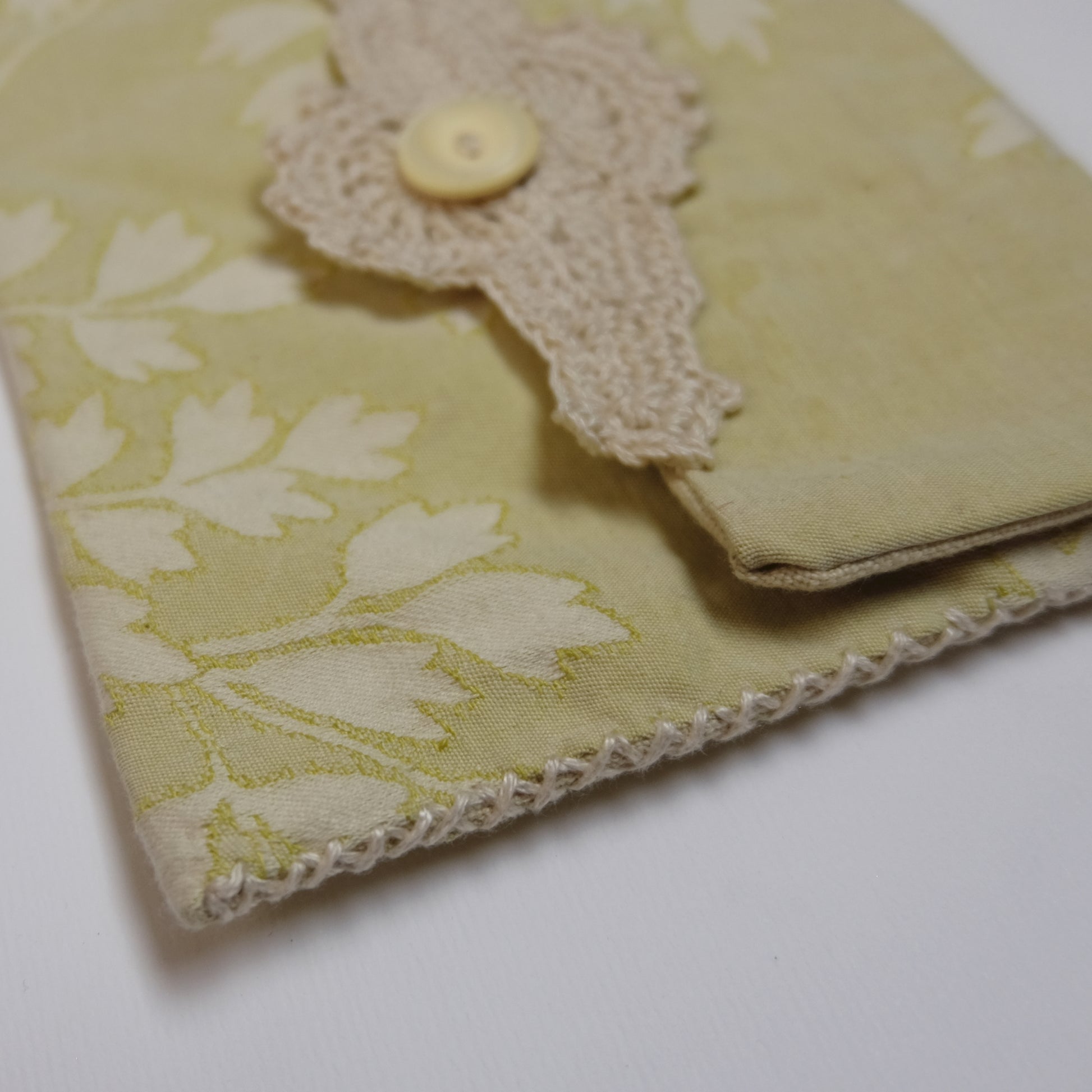 Astuccio con fodera realizzato in cotone rivalorizzato da campionari dismessi. Cucito e ricamato a mano