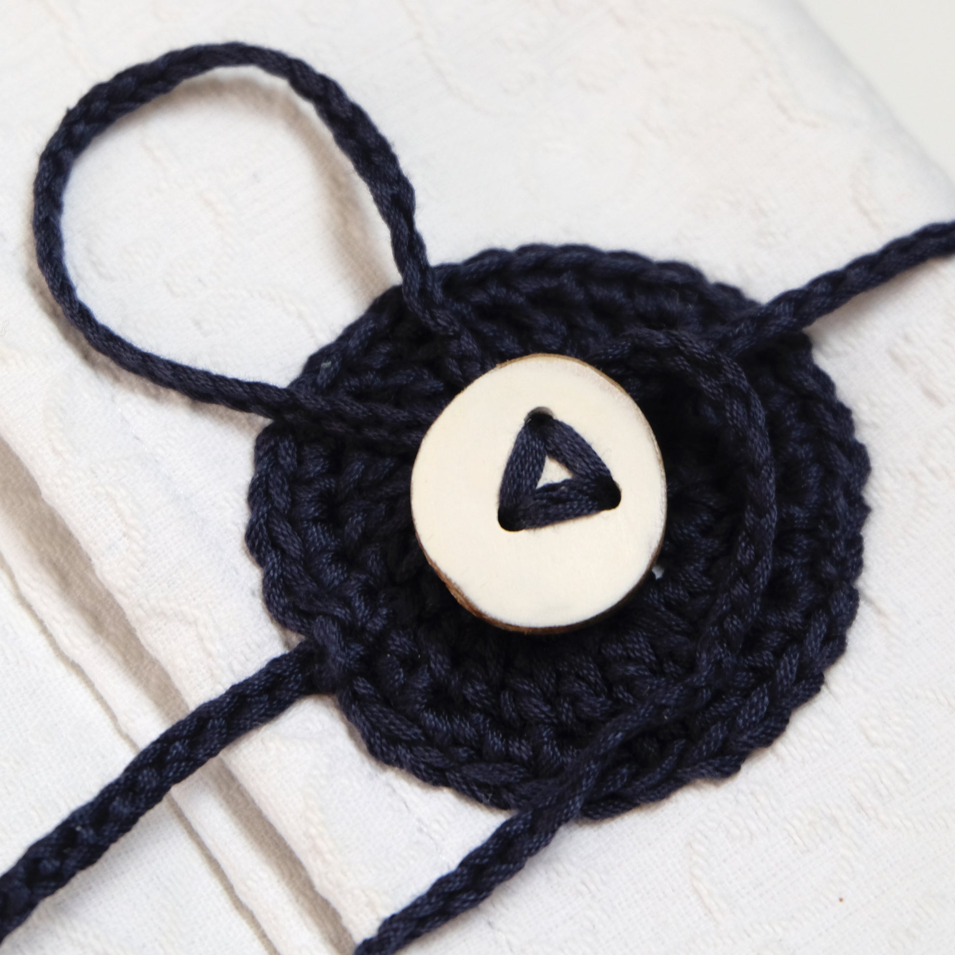 Custodia imbottita con bottone in legno
