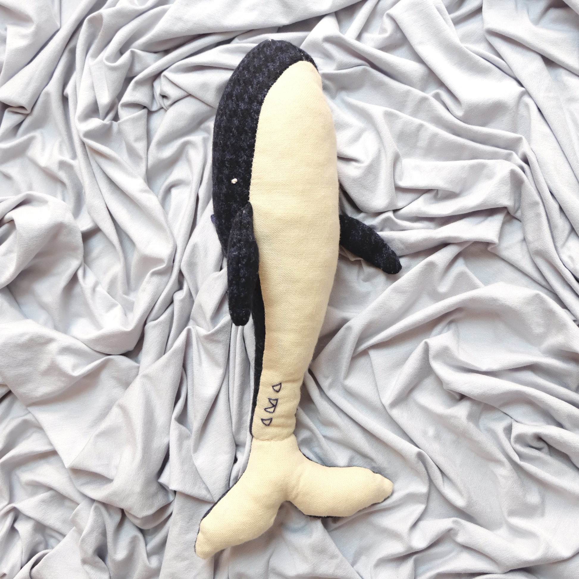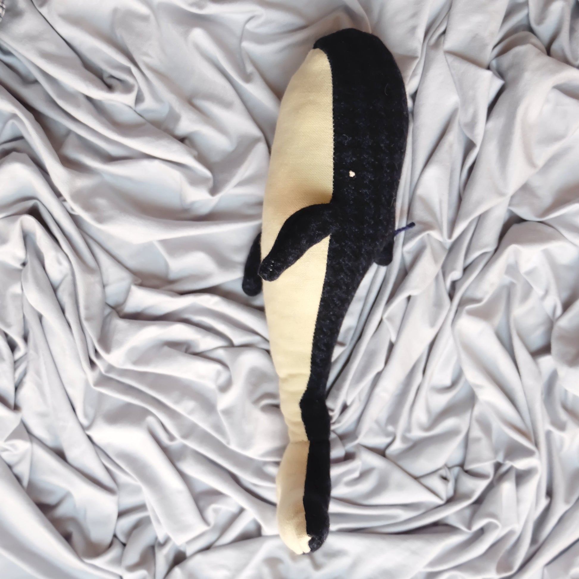 Pupazzo realizzato con cotone, lana e imbottitura rivalorizzata.