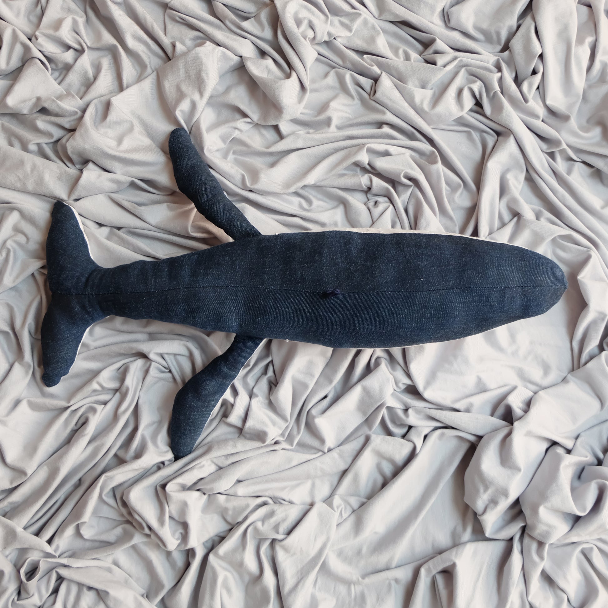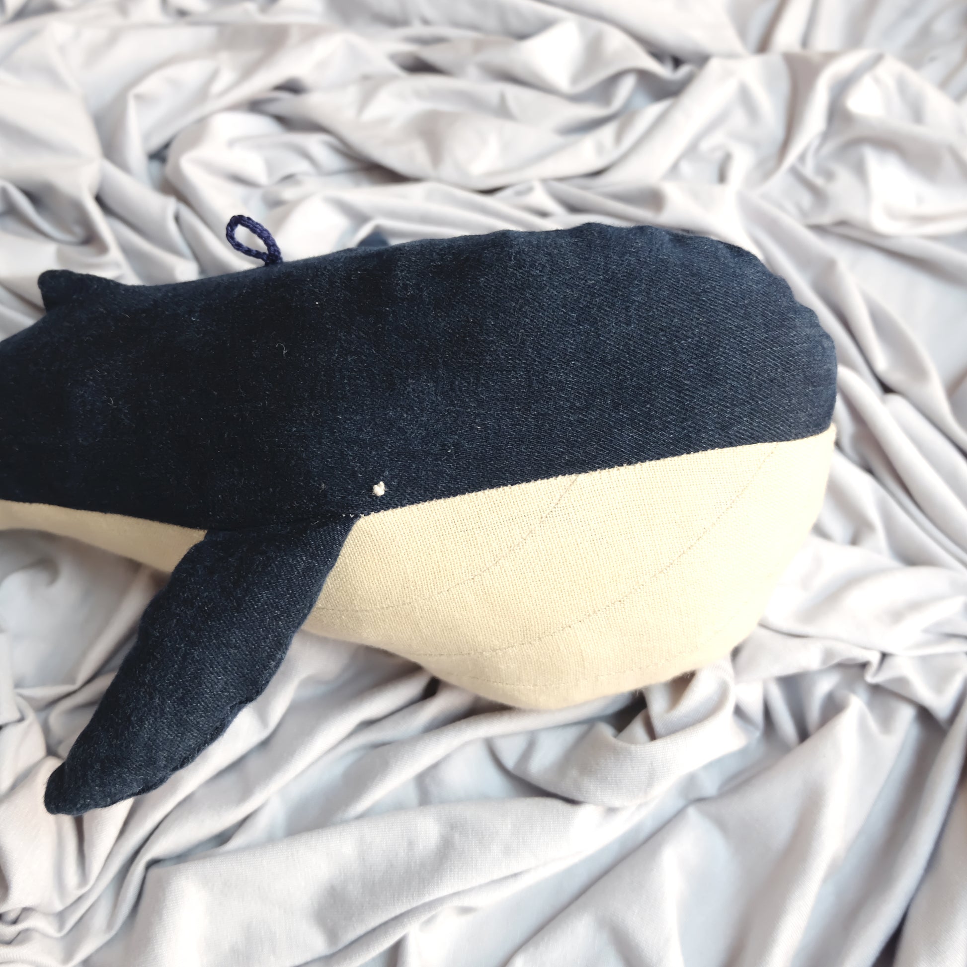 Pupazzo realizzato con tessuti in cotone e imbottitura sintetica rivalorizzati.