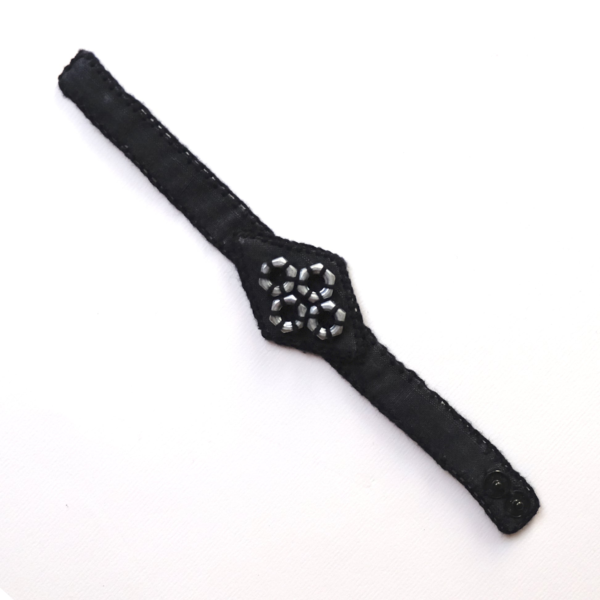 Bracciale a rombo in seta rivalorizzata e bulloni.