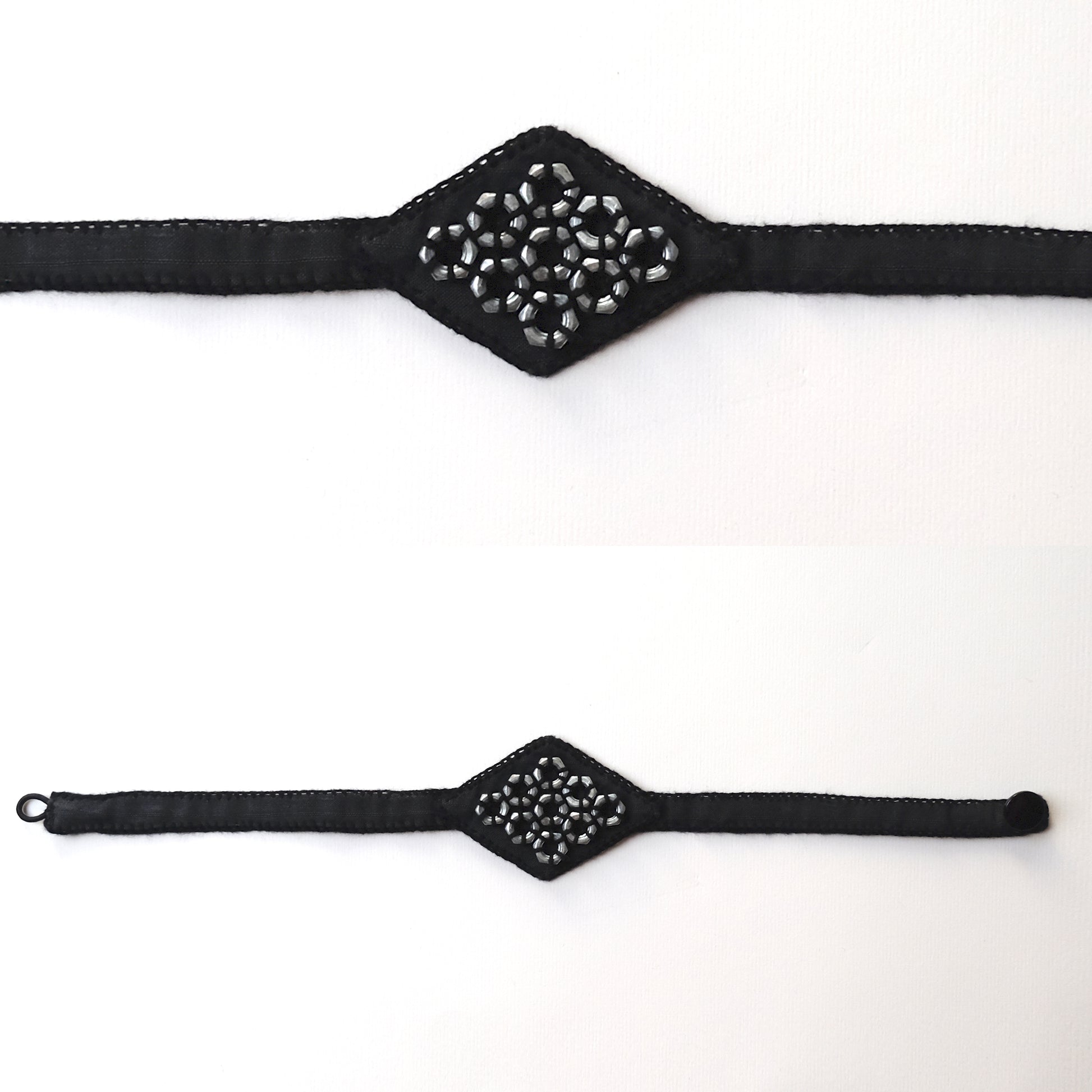 Collana realizzata in seta rivalorizzata, bulloni in acciaio e cotone.