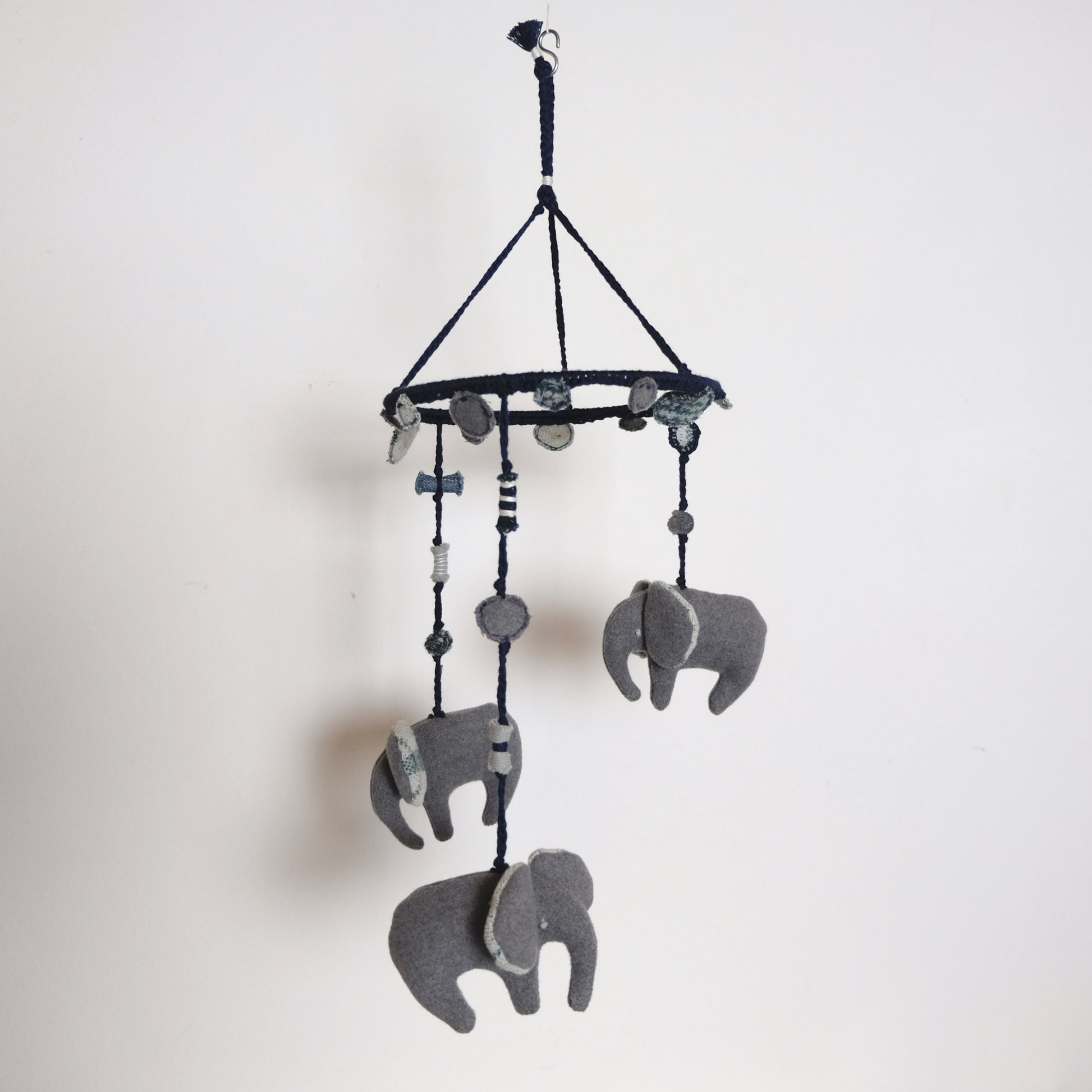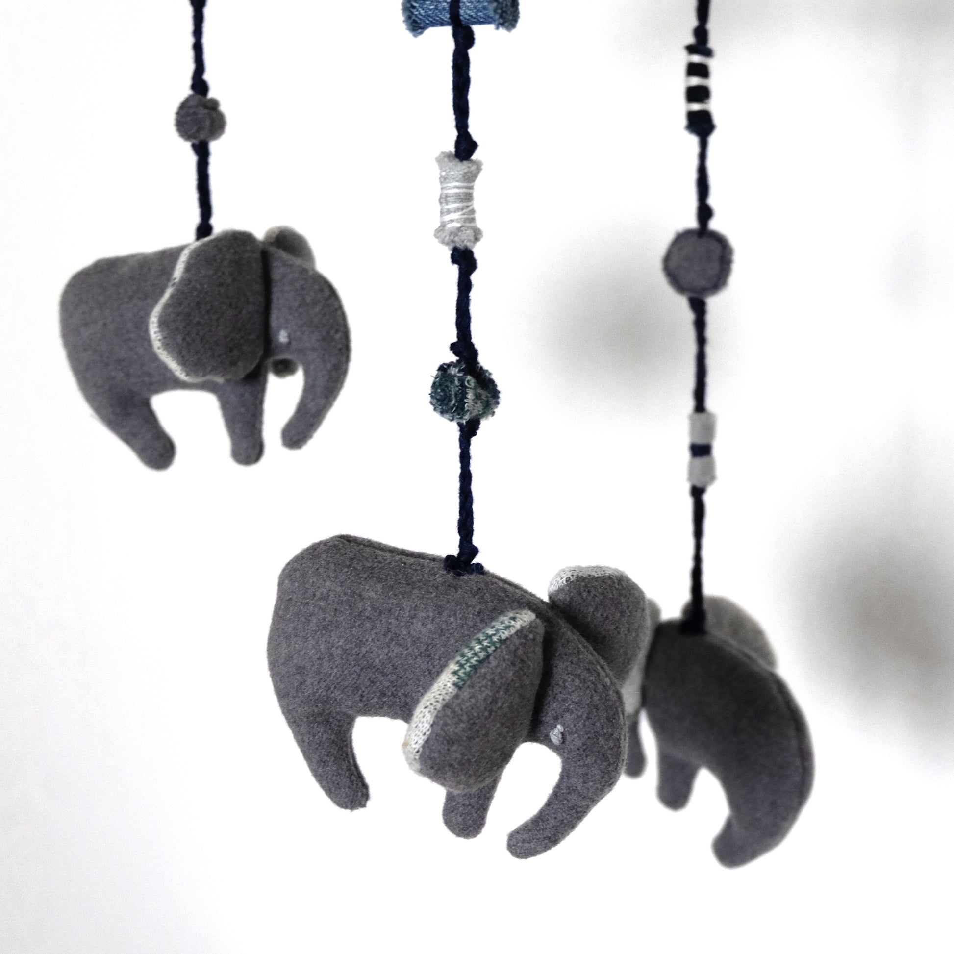 Goistrina per bambini con elefanti, realizzata in lana e cotone rivalorizzati.