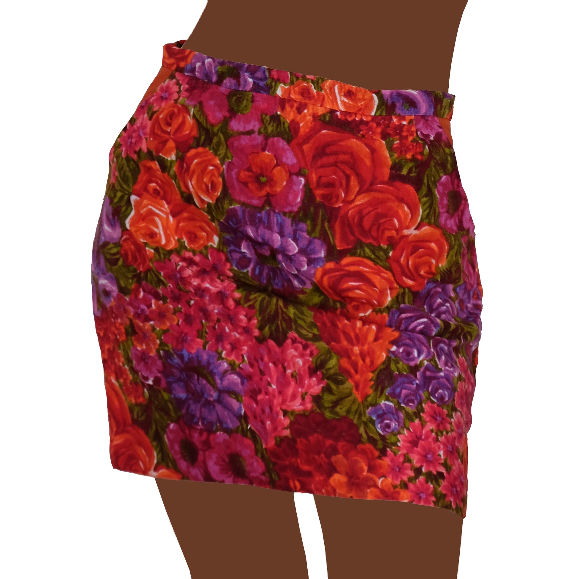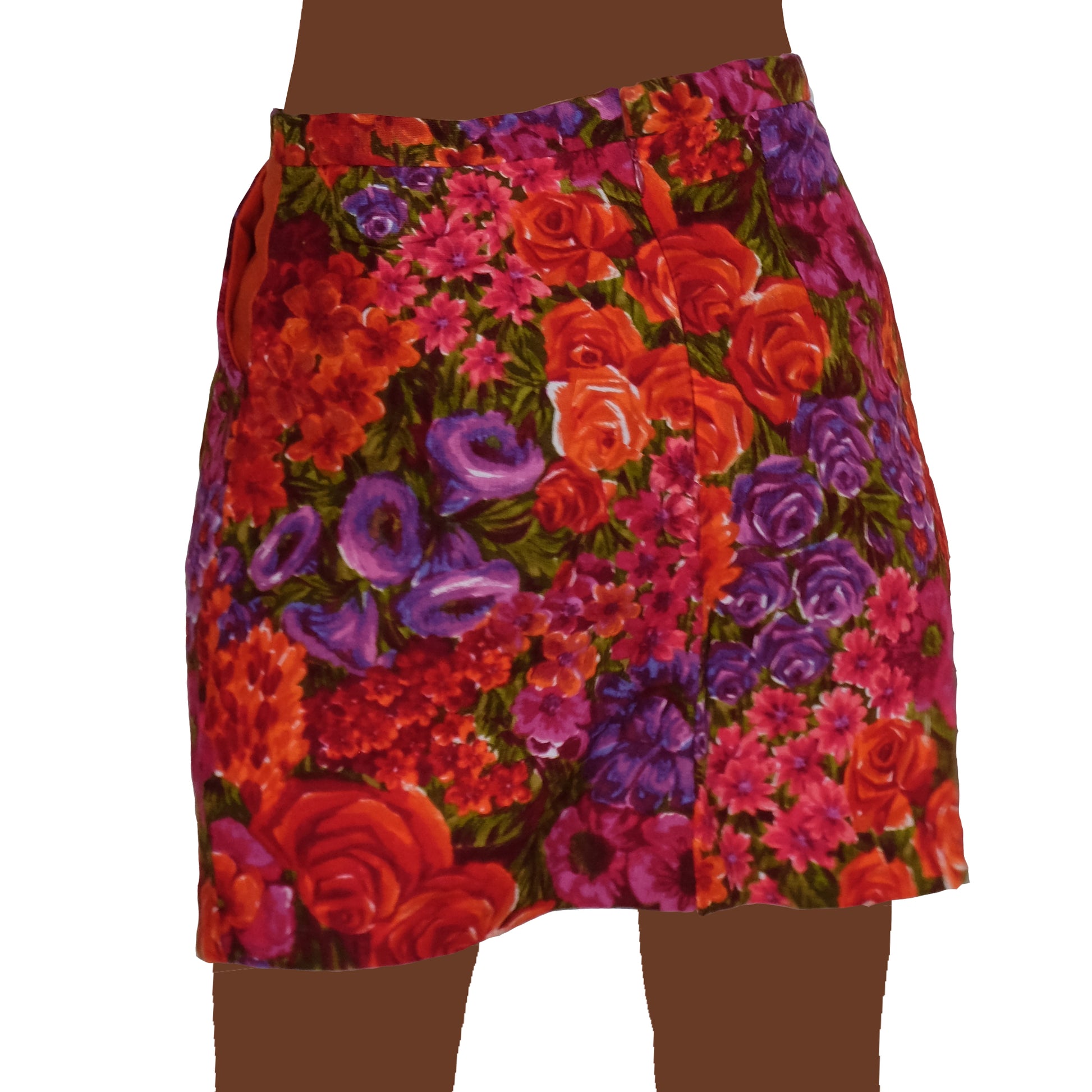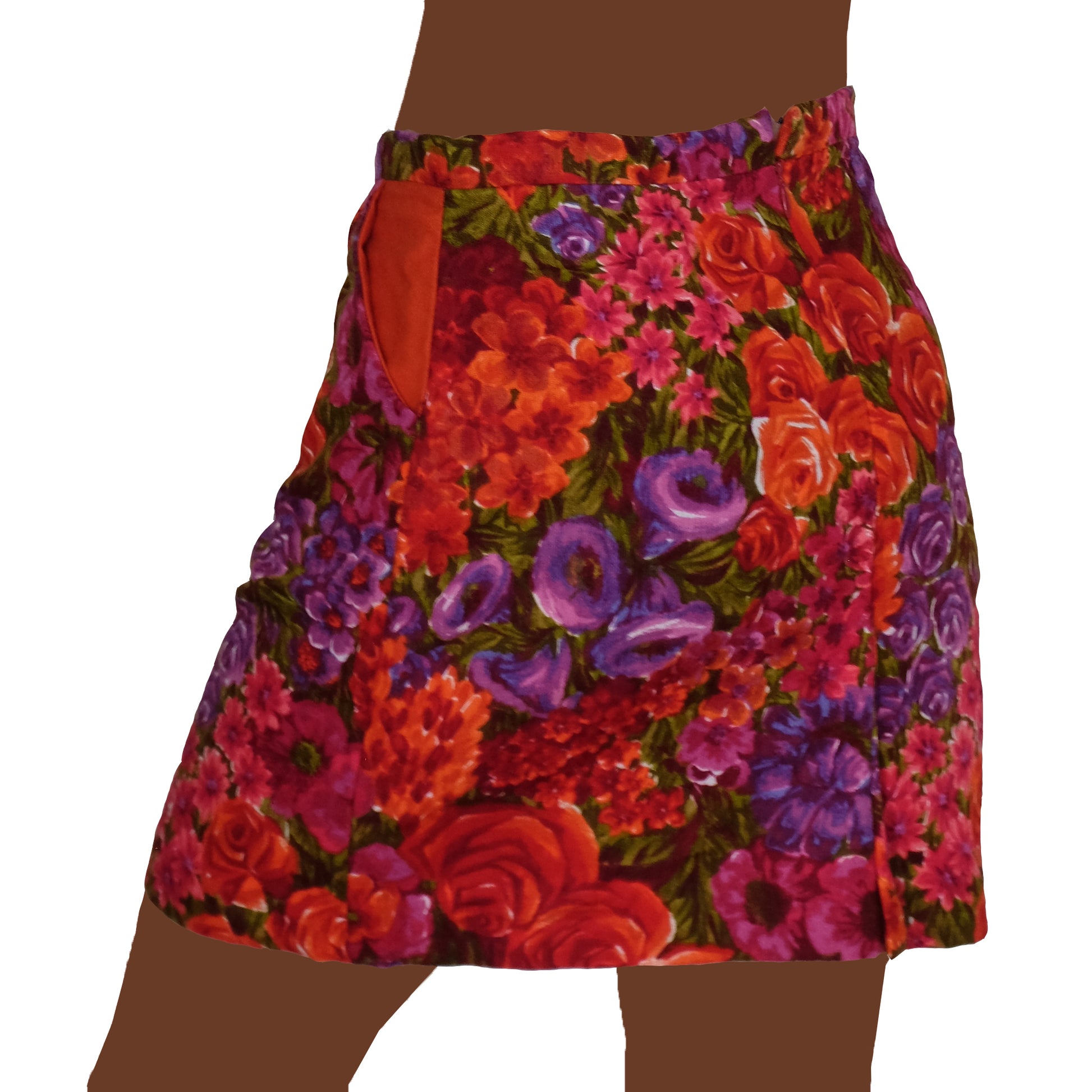 Gonna floreale con tasche realizzata in poliestere misto cotone rivalorizzato.