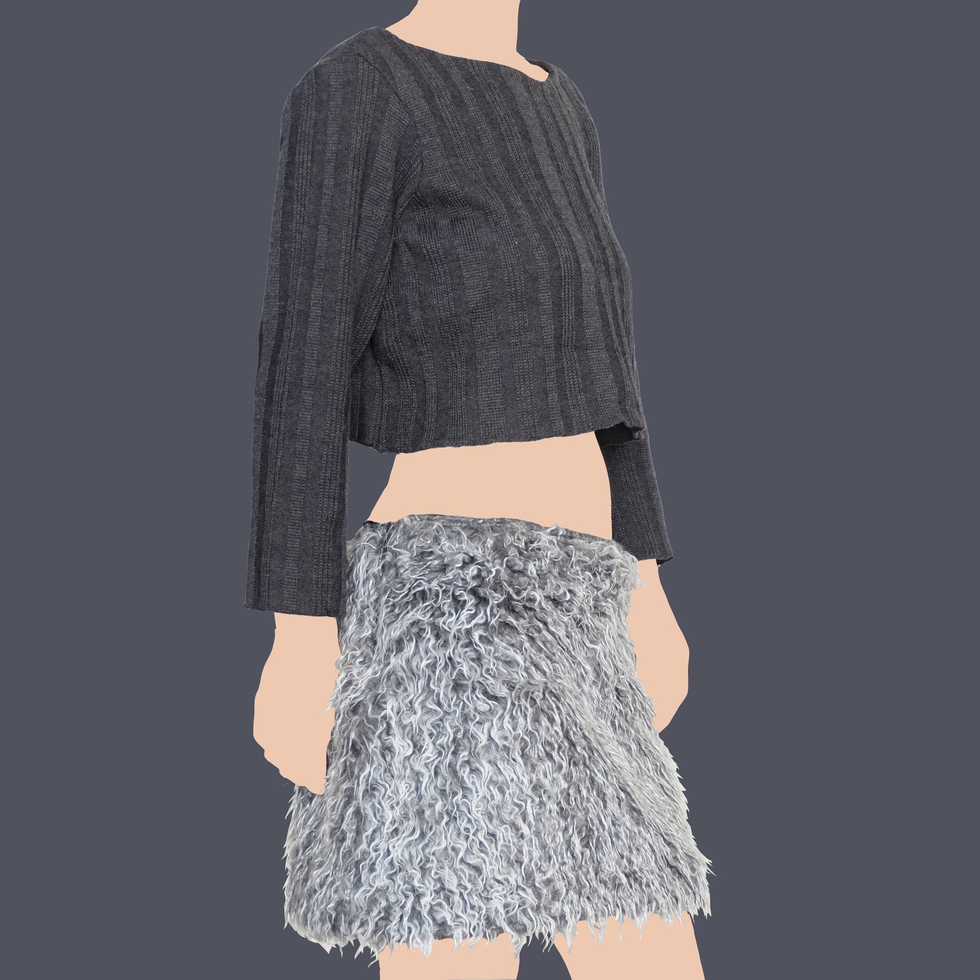 Finta pellccia in poliestere, fodera in viscosa, chiusura laterale a cerniera.