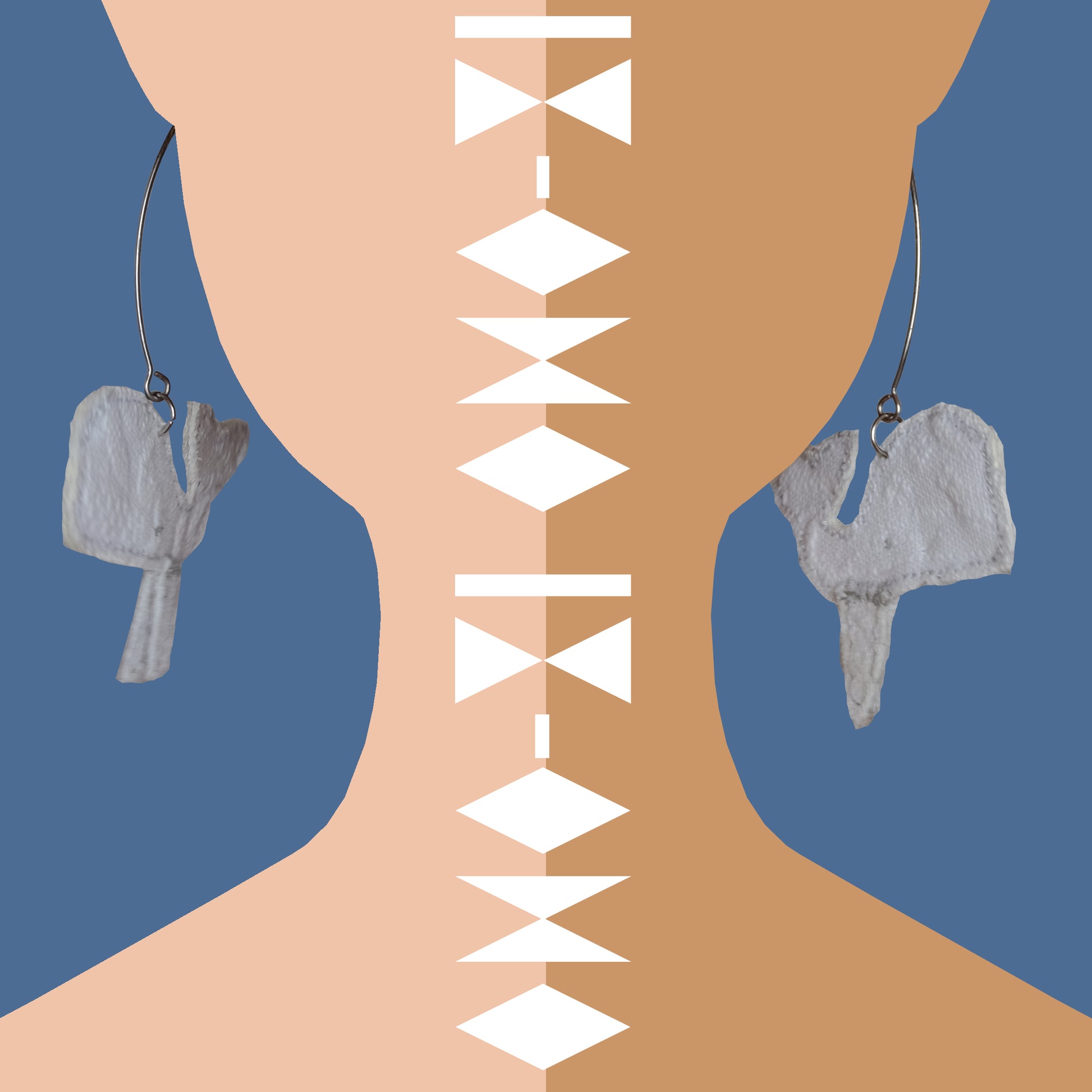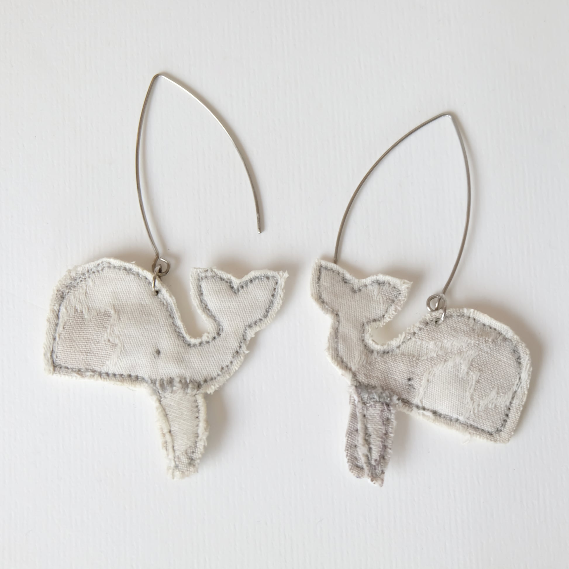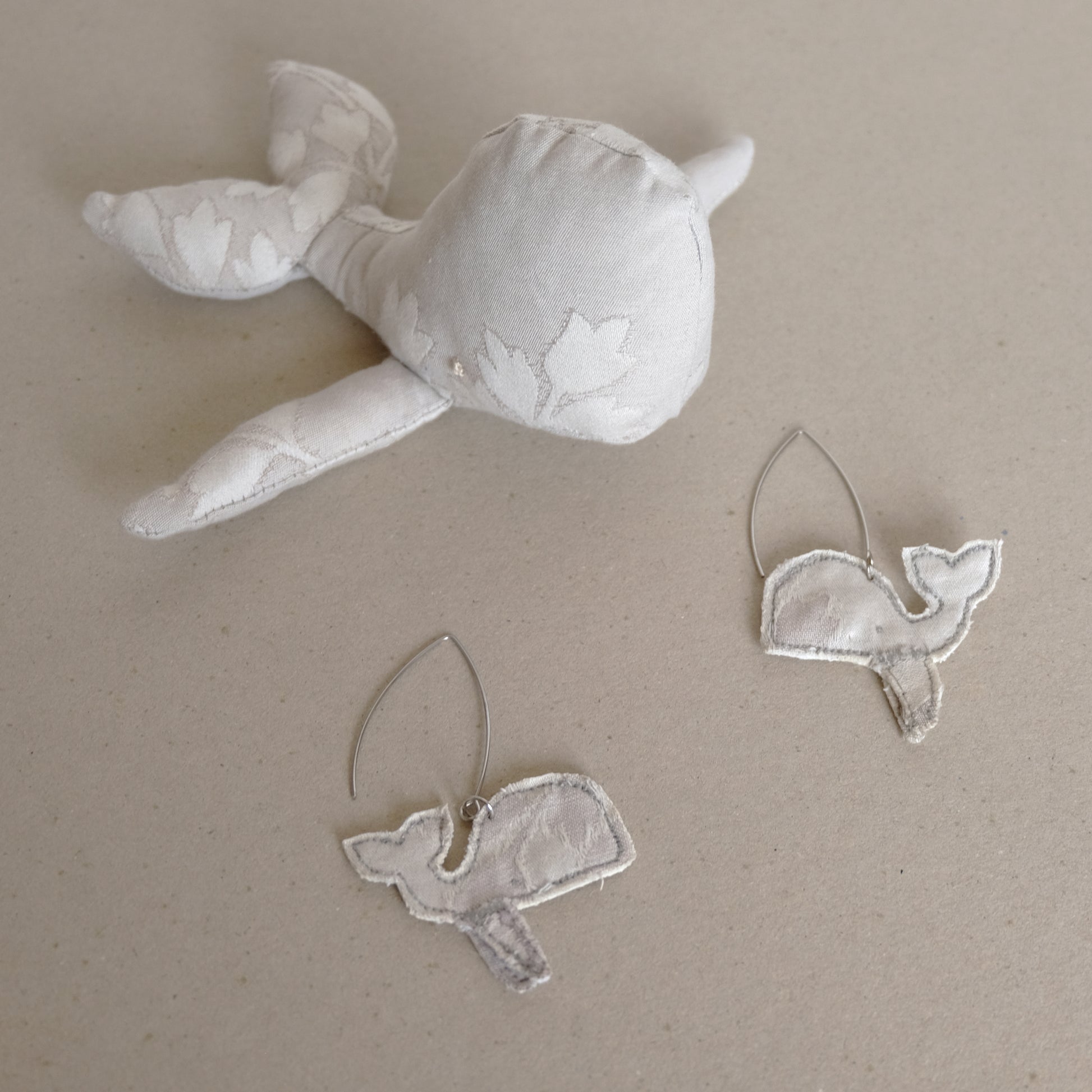 Orecchini realizzati con tessuto in cotone rivalorizzato e acciaio.