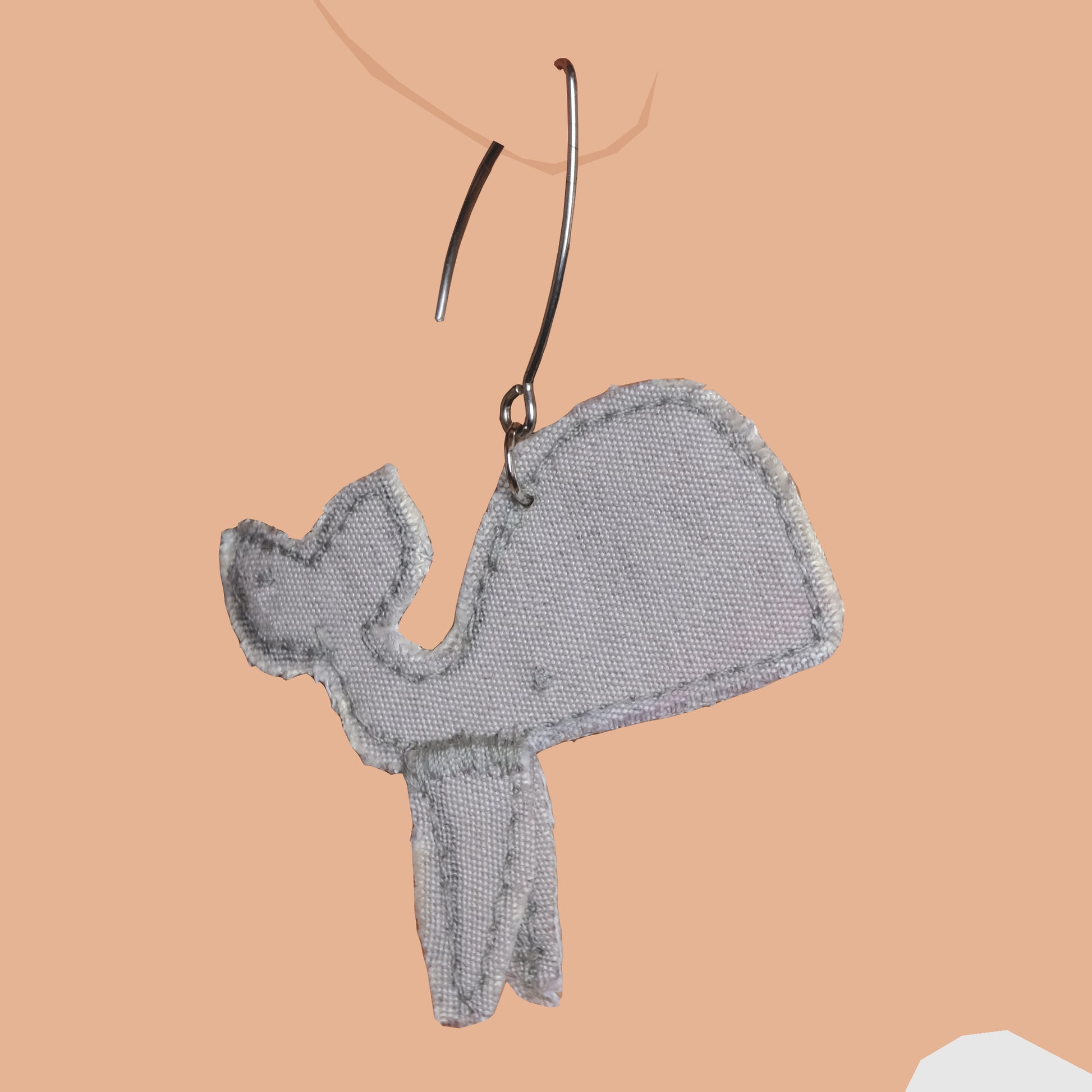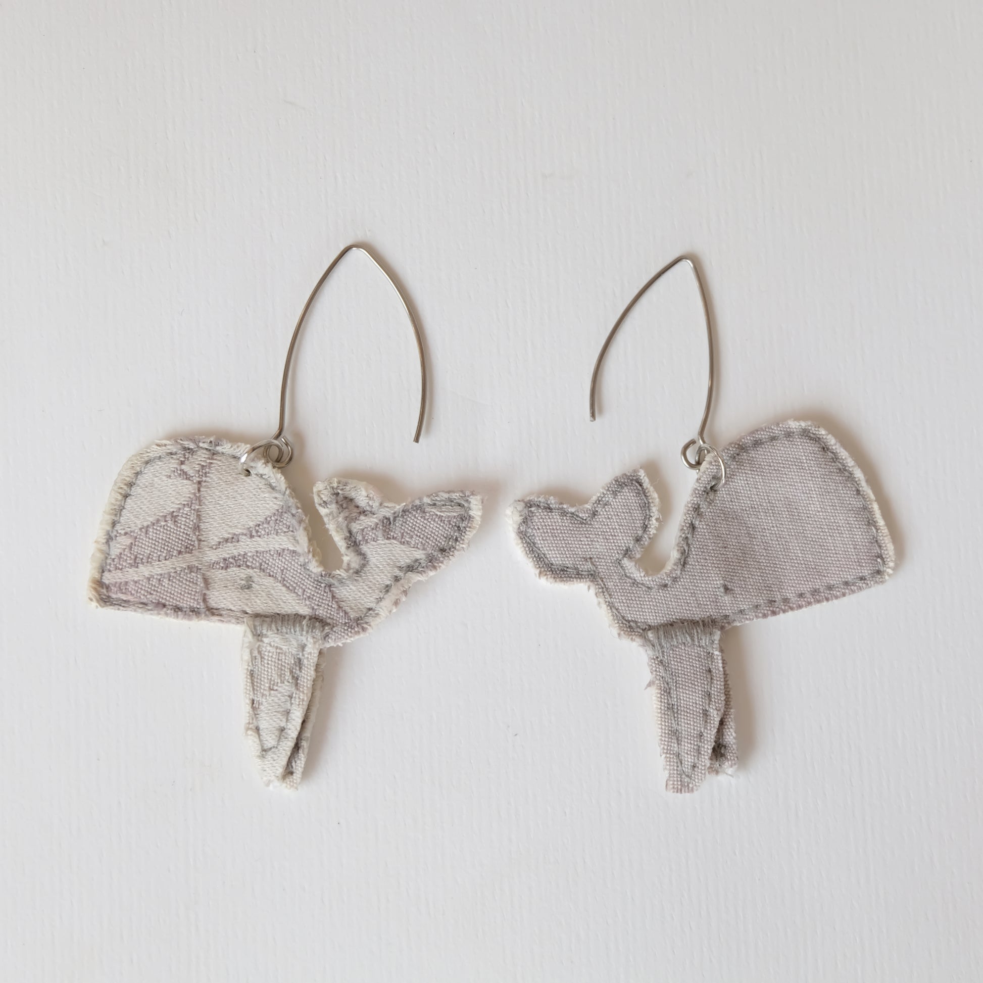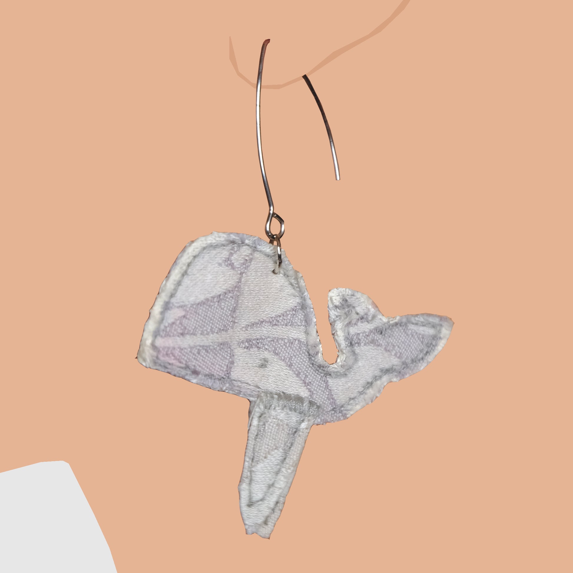 Orecchini realizzati con tessuto in cotone rivalorizzato e acciaio.