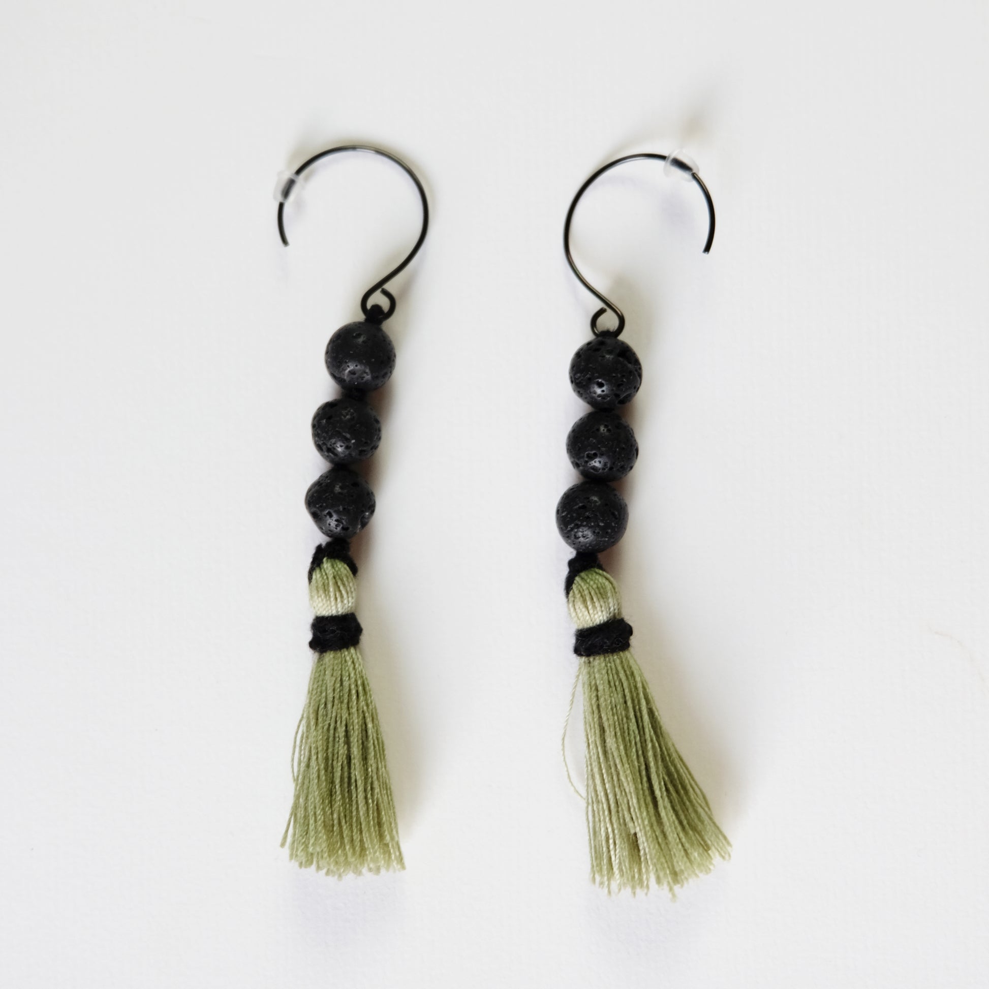Orecchini con pietra vulcanica e nappa verde chiaro