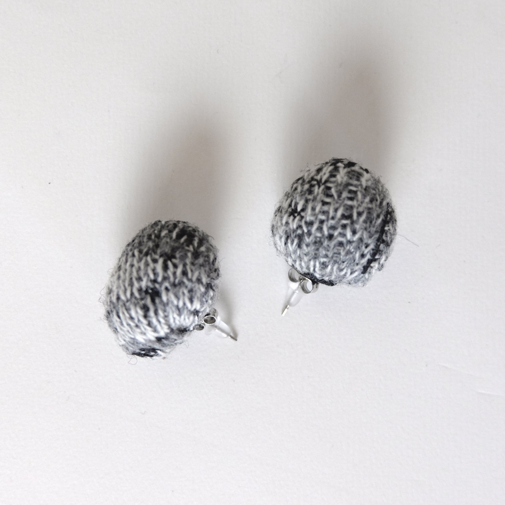 Orecchini realizzati lana misto poliestere rivalorizzata e perno in acciaio.