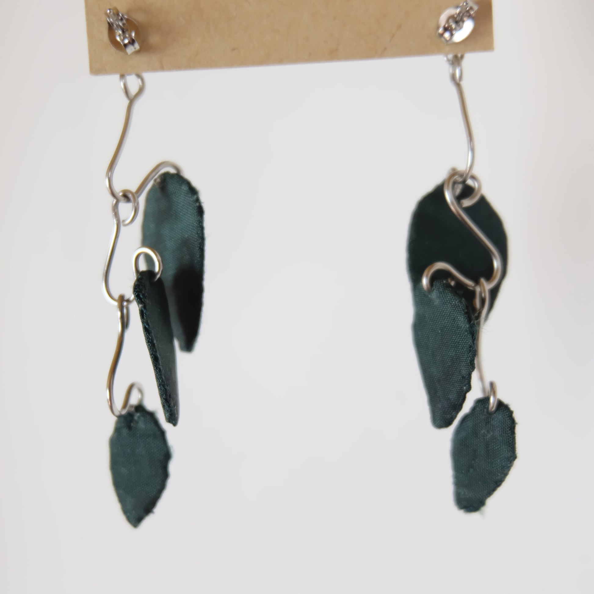 Orecchini realizzati in seta rivalorizzata, acciaio.
