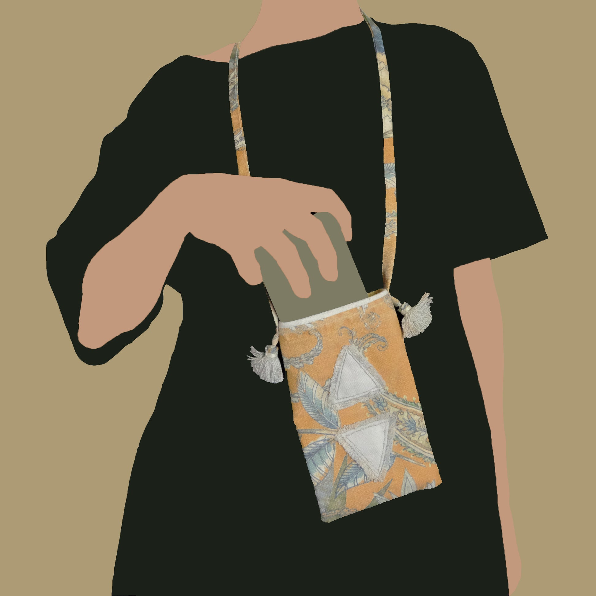 Astuccio per telefono realizzato con cotoni rivalorizzati.