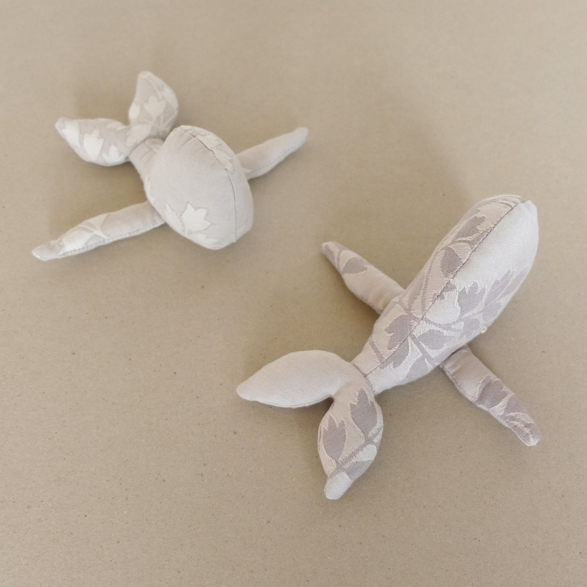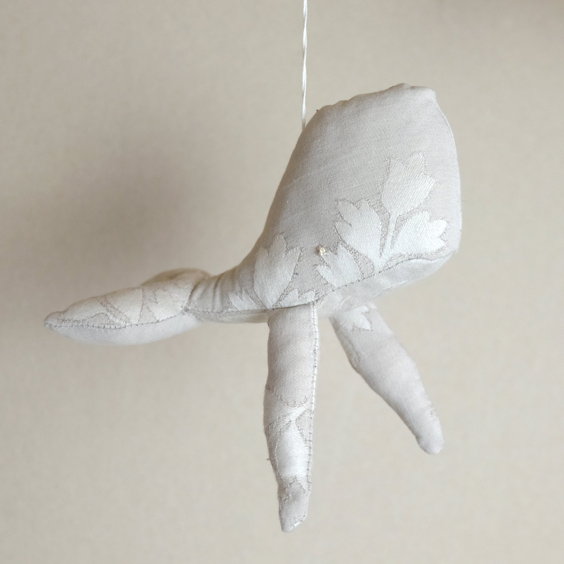 Pupazzo realizzato con tessuto e imbottitura sintetica rivalorizzati.