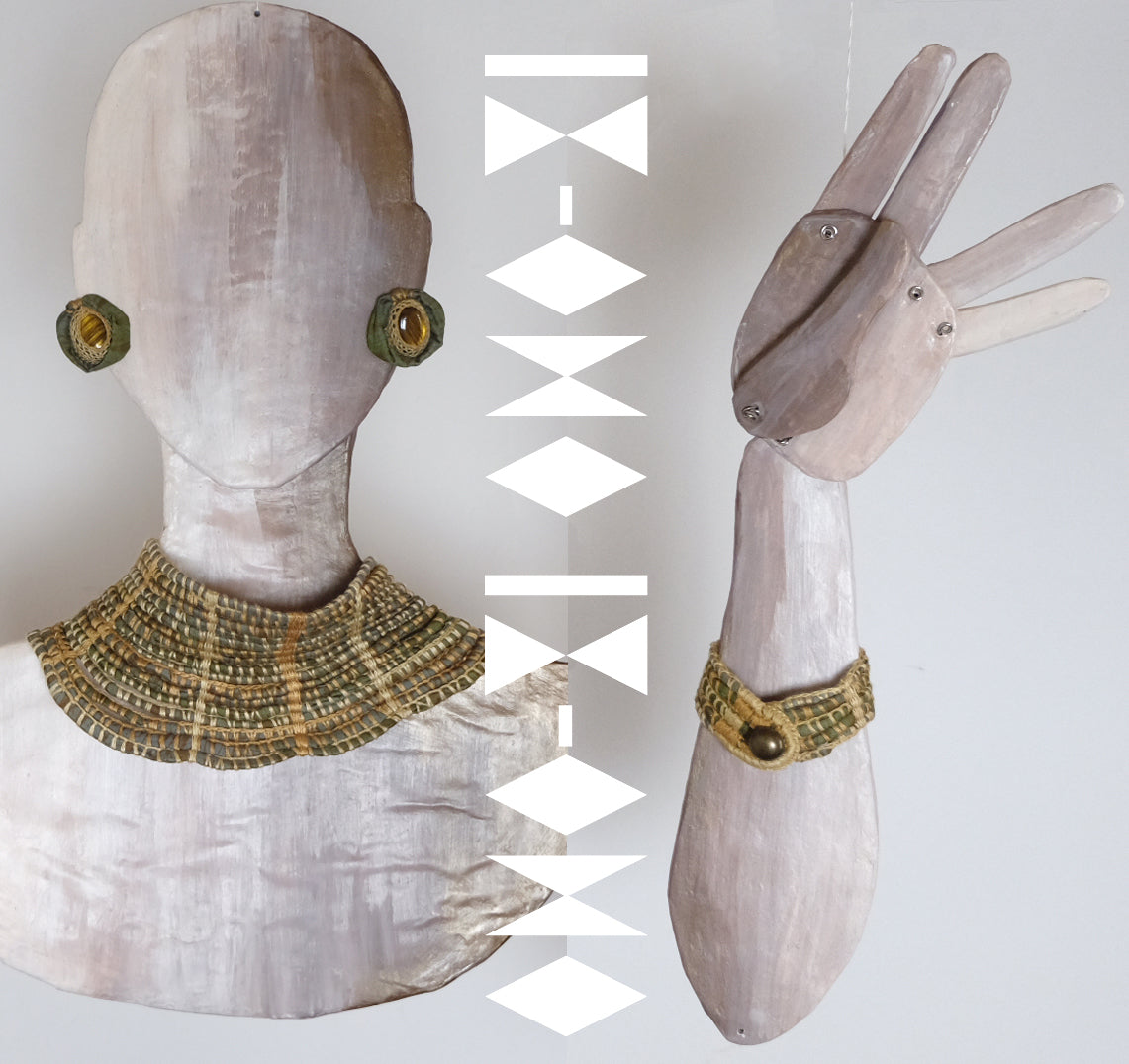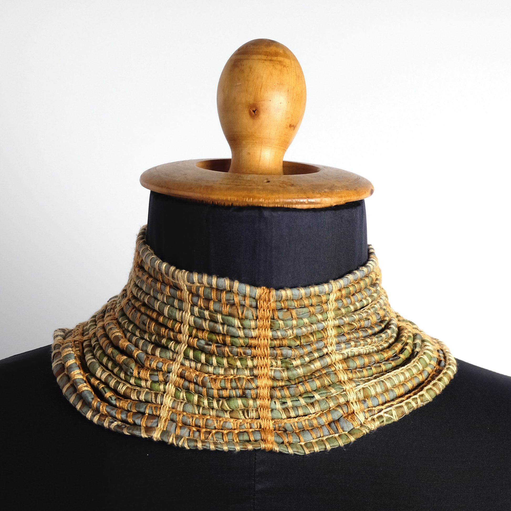 Collana realizzata con tessuto in seta indiana, filo e bottoni rivalorizzati.