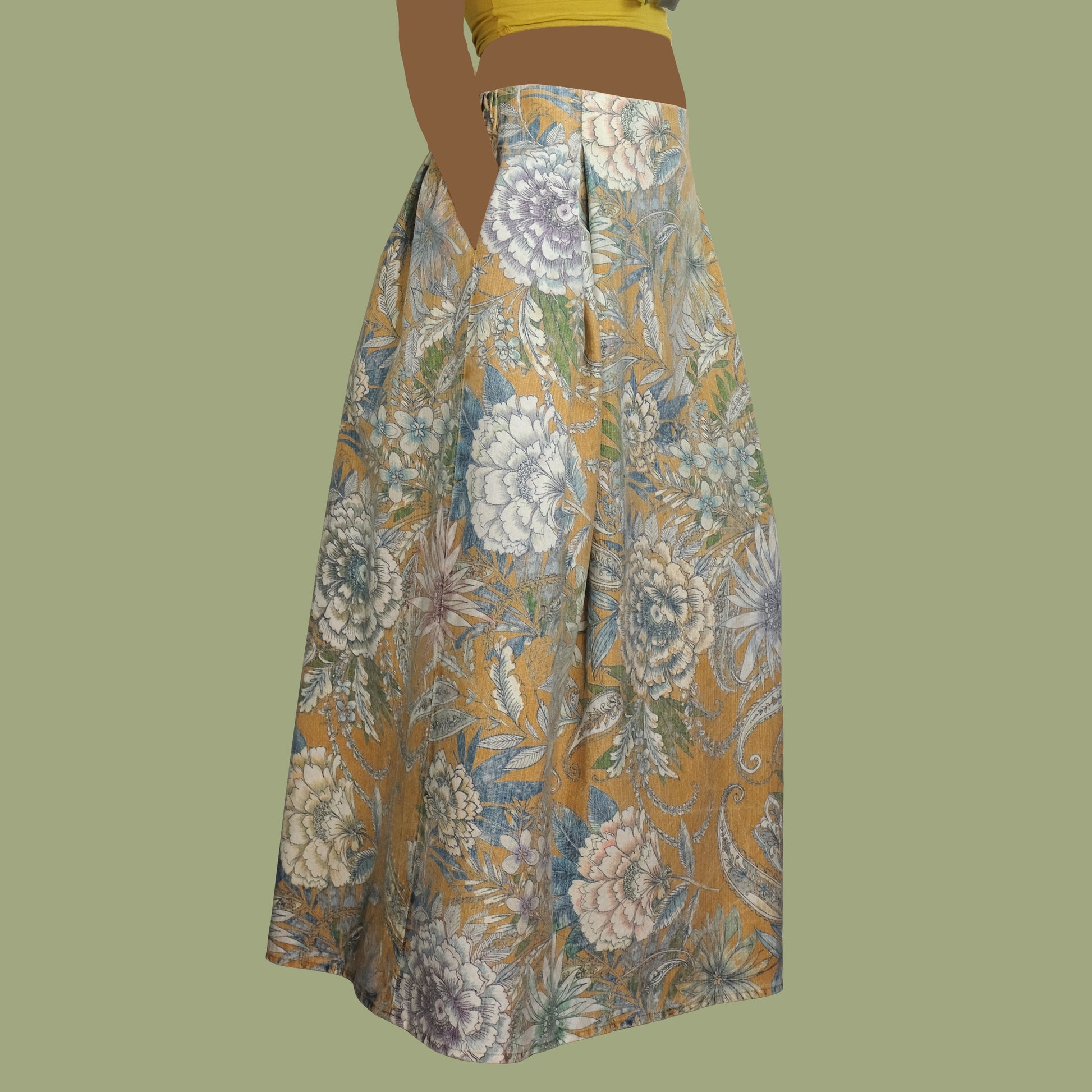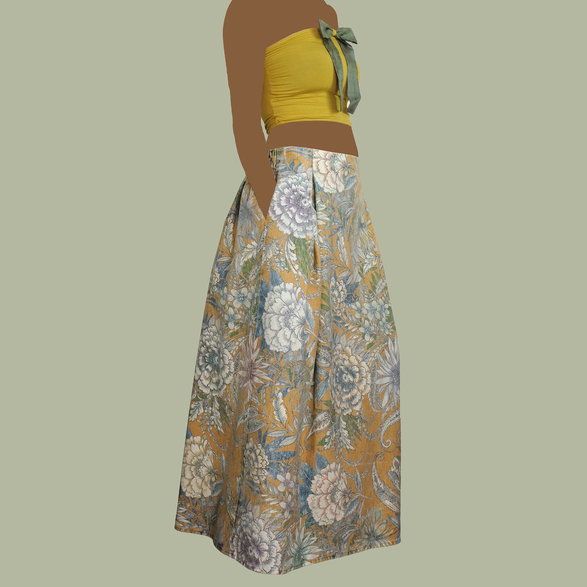 Gonna con tasche realizzata con cotone rivalorizzato.